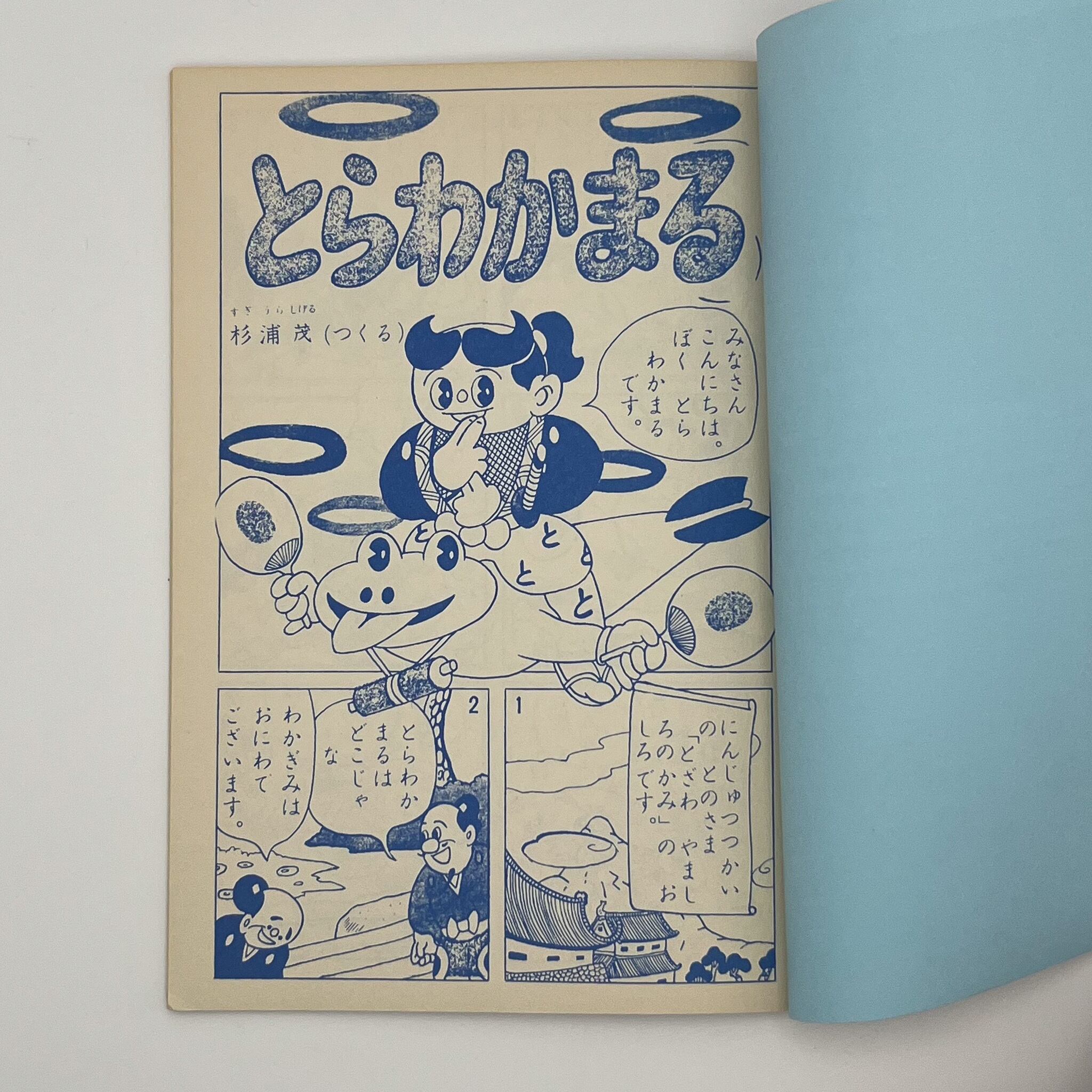 杉浦茂による、武蔵坊弁慶の弟子である少年「とらわかまる」を主人公にした、時代劇パロディ。昭和31年に雑誌『小学二年生』に四ヶ月間だけ連載されたものを、2012に杉浦茂記念祭に際して嶌津よたろうによる、一冊にまとめられた、特別復刻私家版。かわいすぎます。